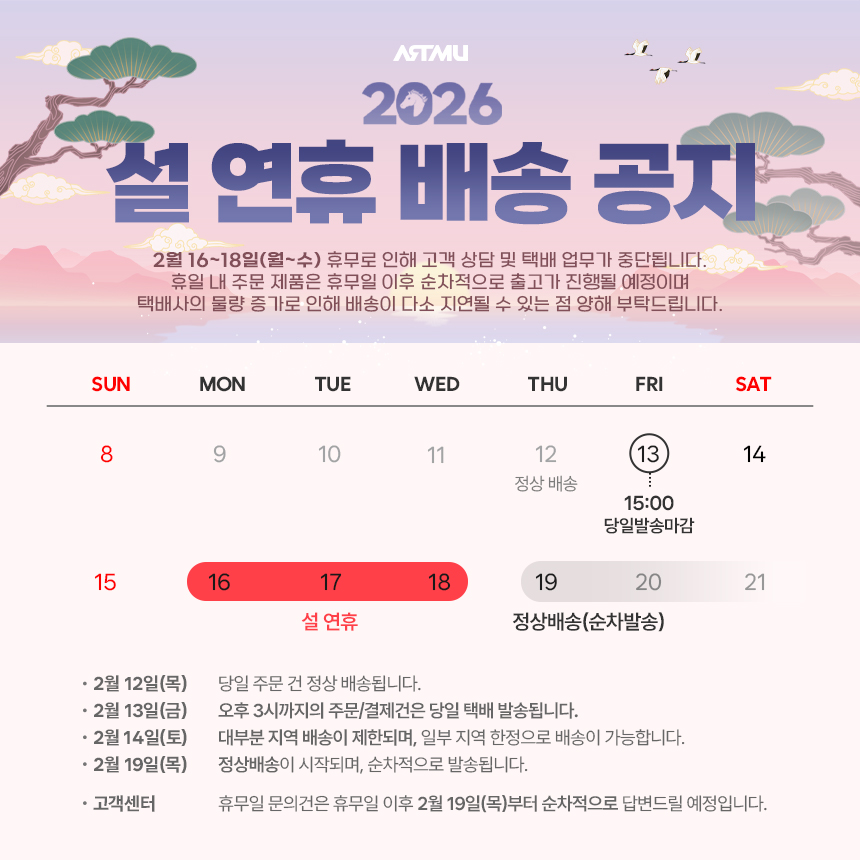 배송 및 고객센터 운영 안내드립니다.