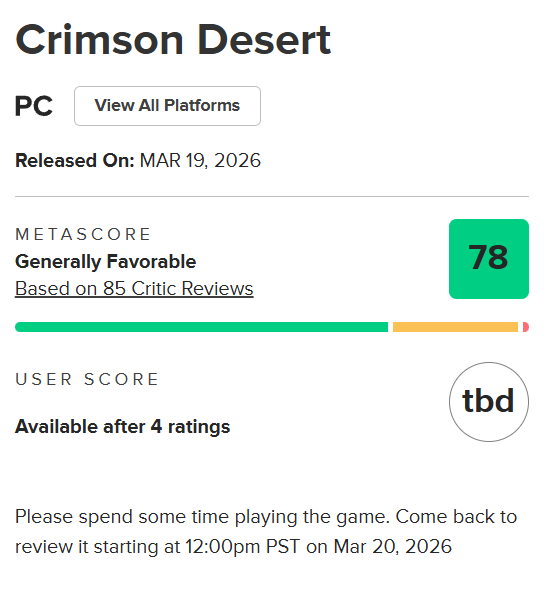 메타크리틱 77점, 오픈크리틱 81점으로