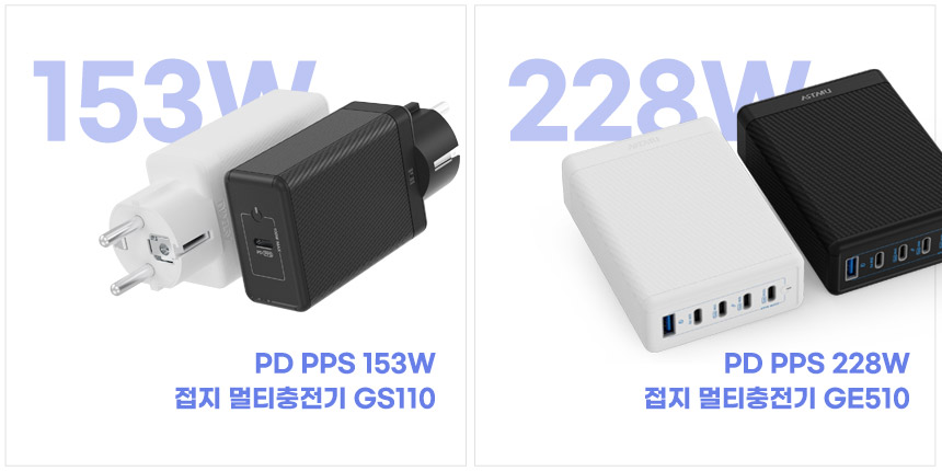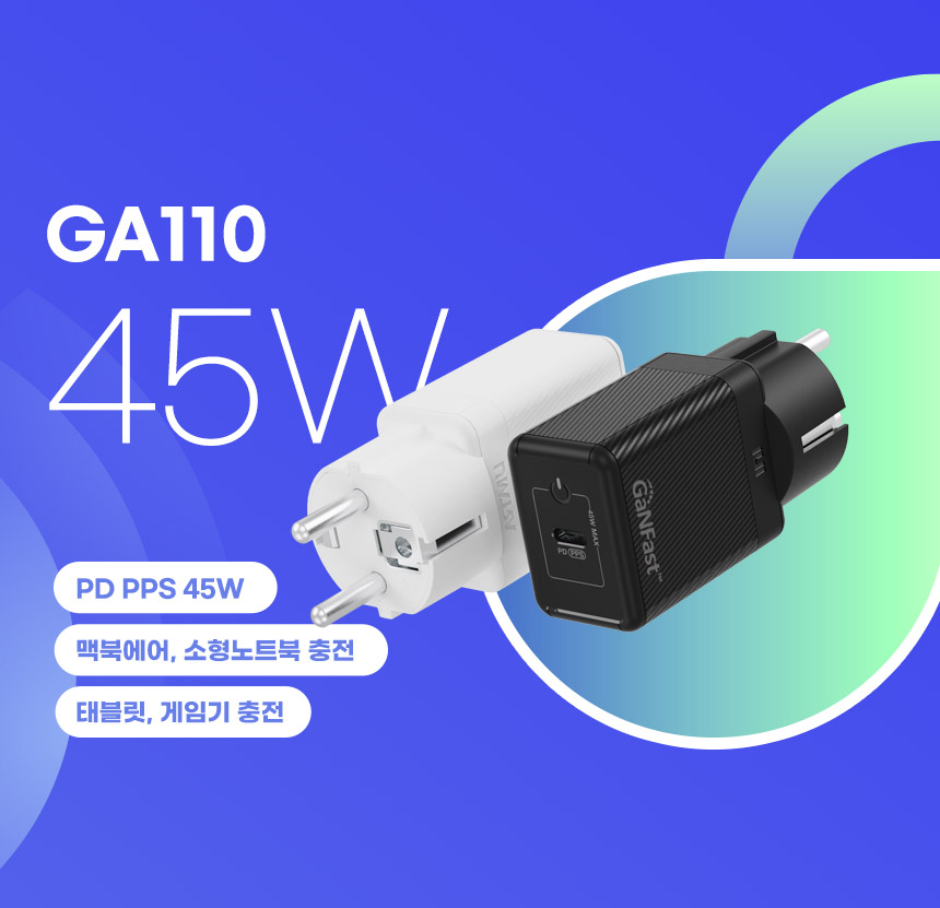 GA110, 210, 210은 최대 45W 출력을 지원하는 초고속충전기로