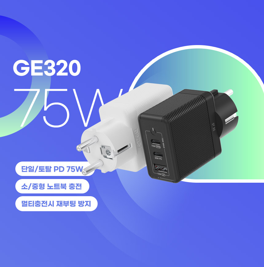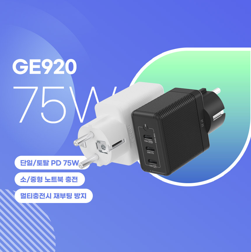 3개의 장치를 동시에 충전할 수 있으며, 하나의 장치를 연결할 때 최대 75W를 제공합니다.