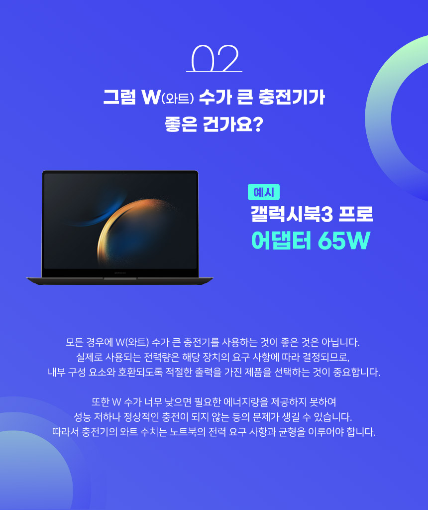 모든 경우에 W(와트) 수가 큰 충전기를 사용하는 것이 좋은 것은 아닙니다.