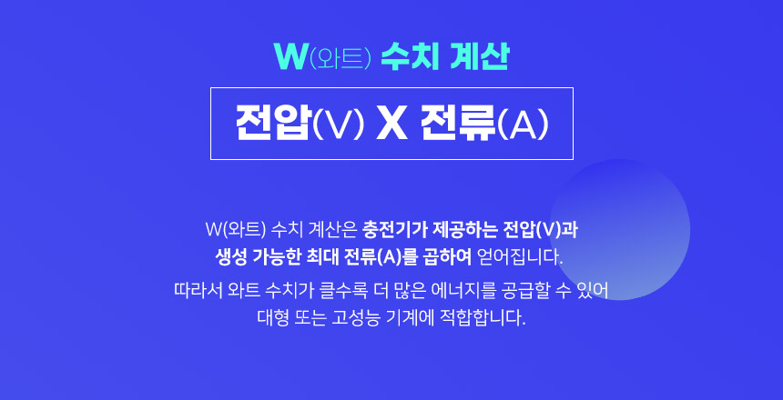 W(와트) 수치 계산은 충전기가 제공하는 전압(V)과