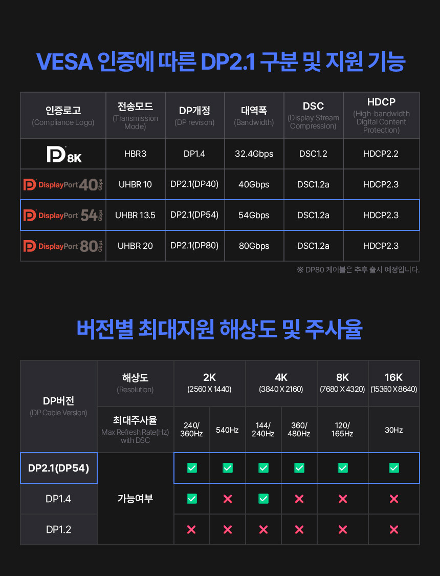 DP54는 54Gbps의 대역폭을 제공하여