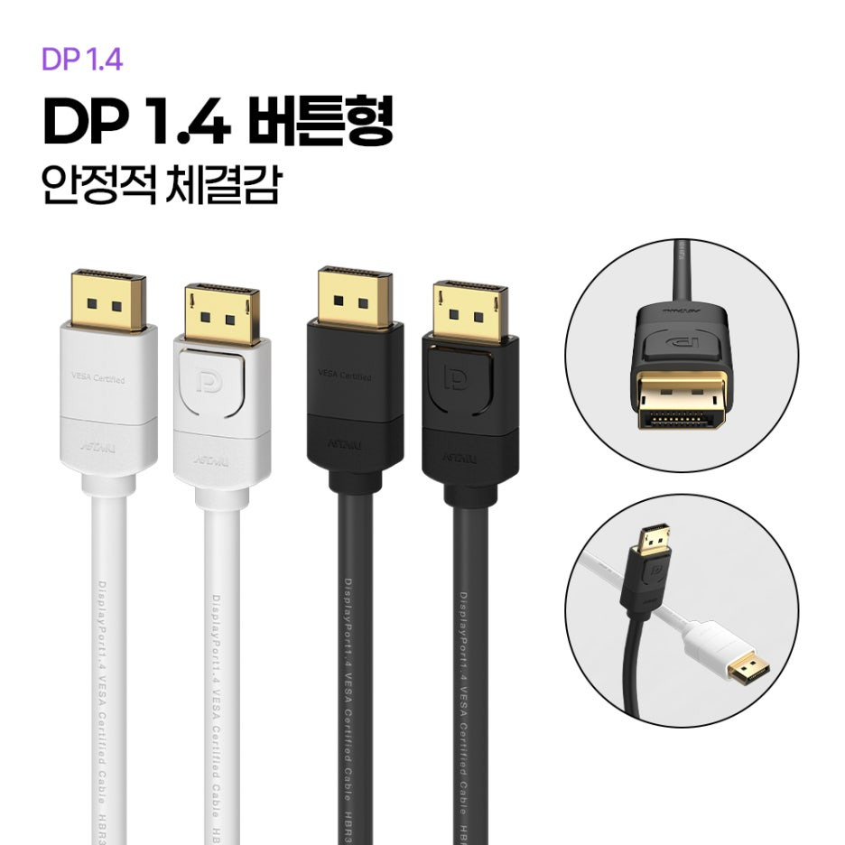 버튼형의 DP 1.4 케이블은