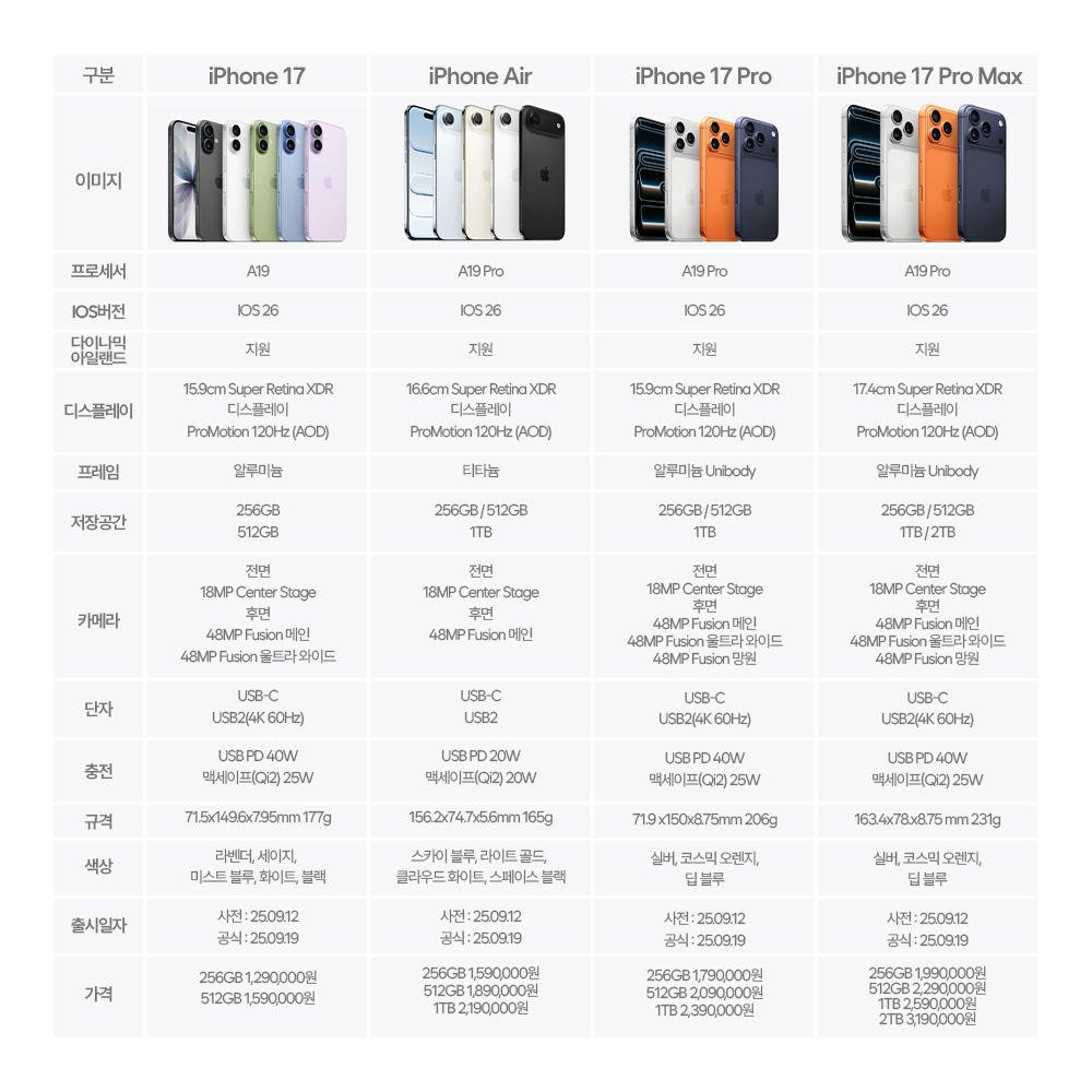 아이폰 17 시리즈 가격