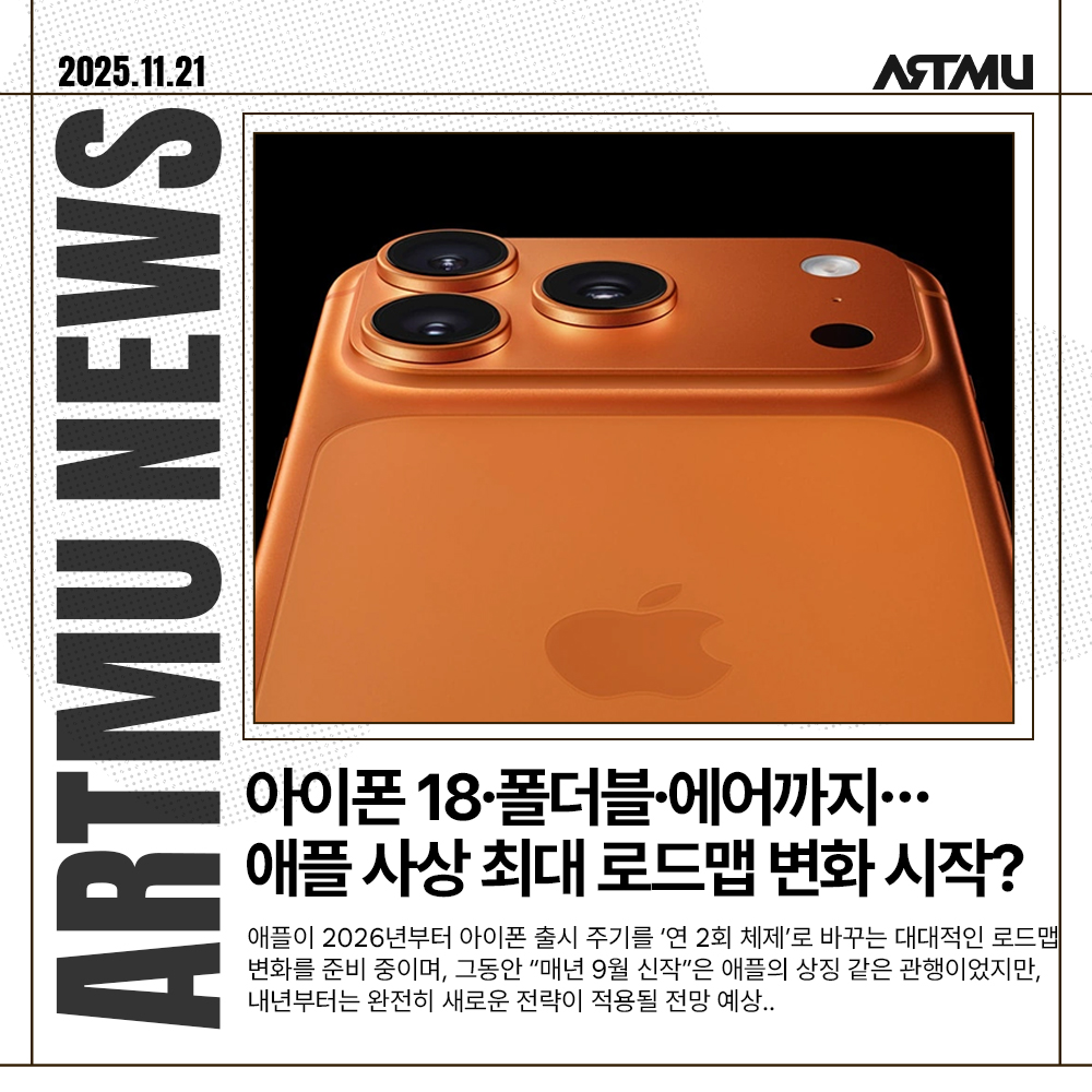 | [ARTMU News] 주간 IT 뉴스 | 폴더블 아이폰을 위한 iOS27 (0) | 2025.11.28 |