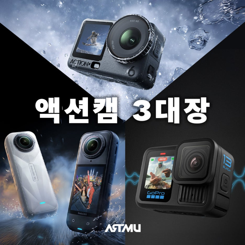 대표적인 액션캠 3종인 DJI, insta360, 고프로의