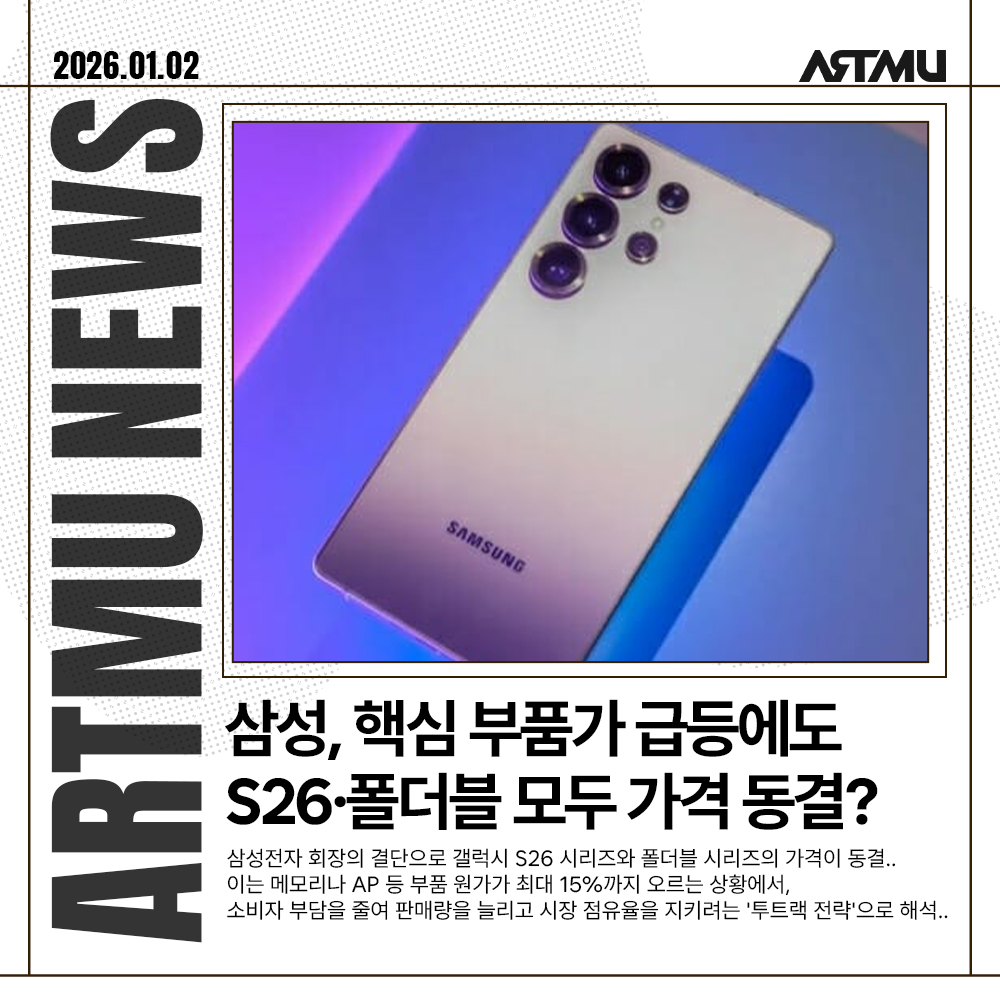 | [ARTMU News] 주간 IT 뉴스 | 26년 3월 출시 확정? 갤럭시 S26 시리즈 (0) | 2026.01.16 |